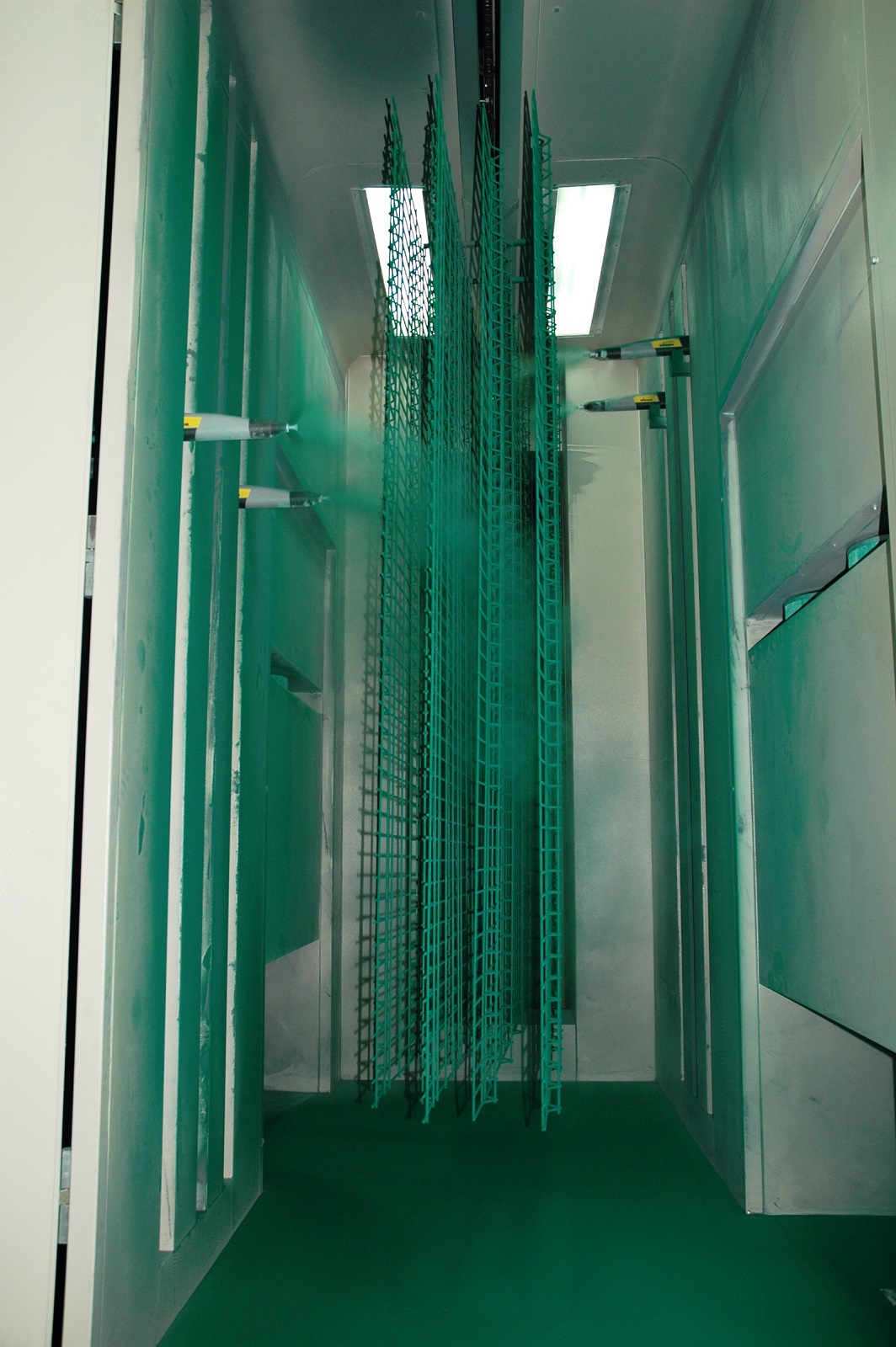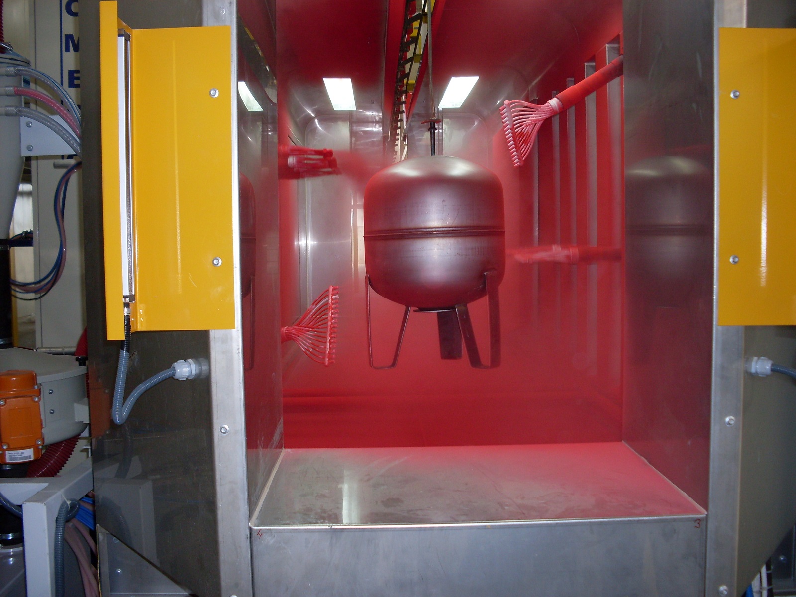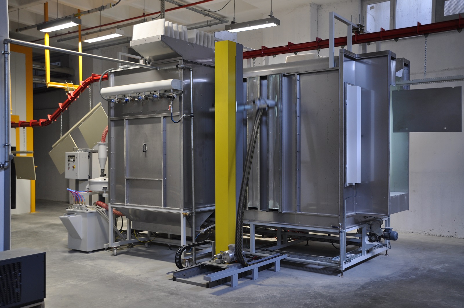 • Tozun hava ile yönlendirilmiş kabin içi yatay hareketi, toz boyanın parça üzerine maksimum verimle sarılmasını sağlar.