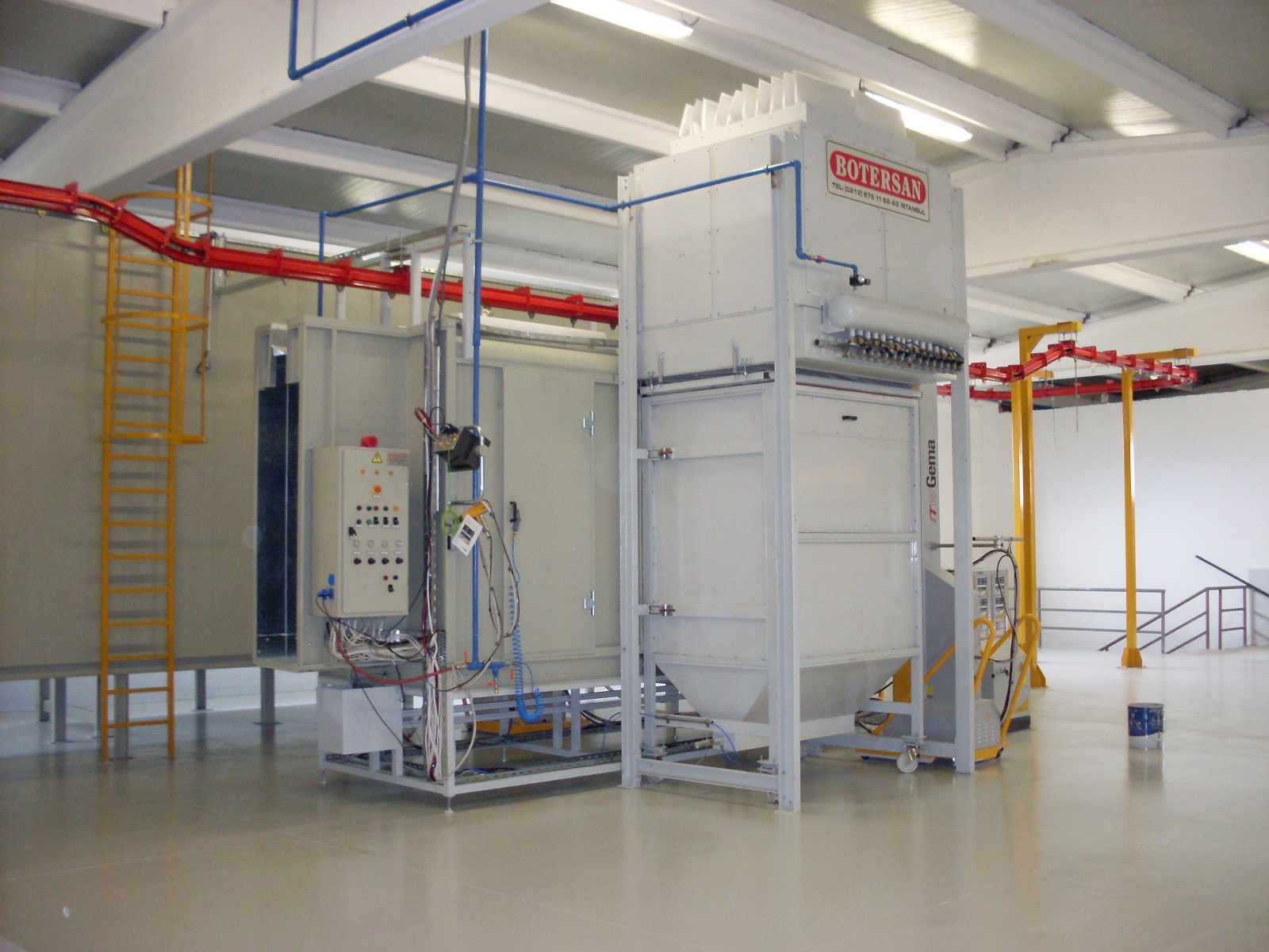 Toz boyama uygulamasında Botersan, kartuş, sinter lamel filtreli ve multisiklonlu toz boyama kabinleri ile kurduğu yüzlerce tesiste boya uygulama kalitesinin artmasını sağlamıştır. Ayrıca toz boya kabin tasarımını Türkiye’de ilk olarak gerçekleştirmiş ve kendini sürekli geliştirmiştir. Botersan, en uygun toz boya uygulama sisteminin belirlenmesinde, boyanacak parça özellikleri, renk değişim sıklığı, bitirme kalitesi gibi önemli rol oynayan başlıca etkenleri göz önünde tutmaktadır. Botersan titiz bir çalışmayla müşterisine en uygun sistem konfigürasyonunu tasarlar.